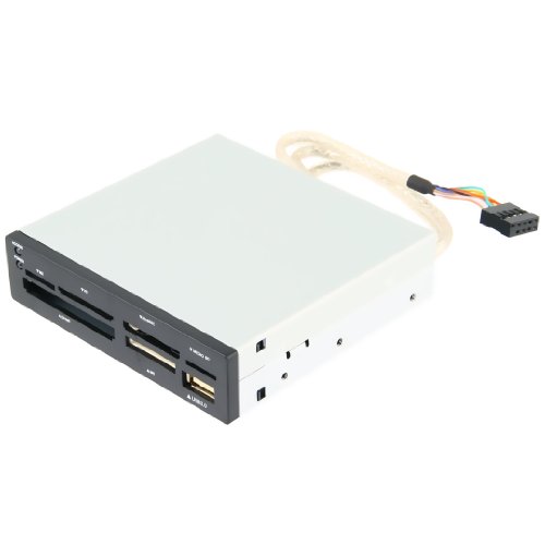 The Sabrent CRW-UINB is a simple PC desktop upgrade that lets you add an Internal Card Reader to the front panel (3.5″) of your desktop, by connecting to an existing USB header on your motherboard (Most Pentium 2 and newer motherboards have them, and most are not used). The Sabrent reader is equipped with 7 slots to accommodate all the latest models of flash media on the market today, including the latest SDHC/SDXC, Micro SDHC/SDXC and M2 slots. Sharing the data is quick and easy between media types or to the PC. Plus, you gain easy access to an additional USB 2.0 port on your front panel. The fully-enclosed aluminum housing provides secure installation, while effectively dissipating heat; and two LEDs quickly confirm power and activity. Provides full USB 2.0 speeds of up to 480 mbps; reverse compatible with USB 1.1.